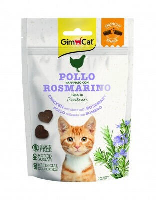 A GimCat ropogós snackjei értékes fehérjeforrások, valamint gyümölcsök és gyógynövények tökéletes kombinációját kínálják, amelyek minden ínyencet meggyőznek! A recept teljesen mentes a gabonaféléktől, a mesterséges színezékektől és az ízektől. Összetétel : Hús és származékai (35,2% csirkefehérje), zöldségek, növényi melléktermékek, olajok és zsírok, 1