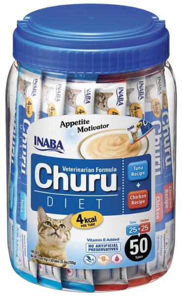 50 db-os kiszerelés: 25 db csirkés + 25 db tonhalas Jellemzők: - Szuper alacsony kalóriatartalmú finomság a macskák testsúlyának szabályozására - Serkenti az étvágyat és kalóriát biztosít, ha a macskák nem tudnak vagy nem akarnak enni a műtét után. - Növeli a vízfelvételt, ami jótékony hatással van a húgyutak és a hólyag egészségére. - Eltereli a macskák figyelm