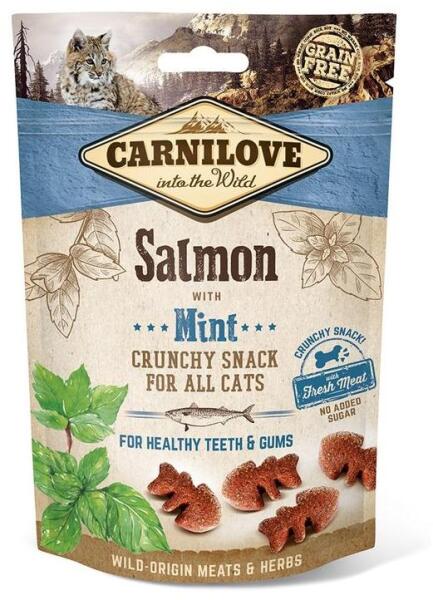 Gabona- és burgonyamentes kiegészítő táplálék friss hússal macskák részére. Ízletes ropogós lazac snack mentával az egészséges fogak és íny fenntartása érdekében. Összetétel: lazac 55% (40% szárított lazac, 15% friss lazac), sütőtök 12%, sárgaborsó 8%, csirkehús (konzervált 7%-os tokoferollal), lazac szósz 5%, menta 4%, sárgarépa 2%, csicseriborsó 2%, szárítot