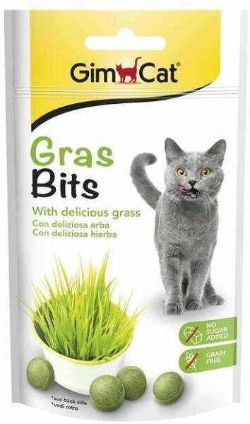 GimCat Gras Bits Tabletta A GimCat Gras Bits zöld fű tabletta egy kiegészítő állateledel, macskák számára. Elérhető kiszerelés: 15 g és 50 gJellemzők:Természetes vitaminokkal segíti az egészség megőrzését. A fű számos táp- és hatóanyag, mint pl. aminosavak, ásványi anyagok, nyomelemek fontos forrása. Magas fűtartalmű csemege, mely értékes kiegészítője a táplál