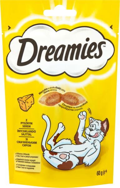 Szeretné elkényeztetni macskáját valamivel? A Dreamies macska jutalomfalat kívülről ropogós és belül krémes és ízletes. A ropogós héjban levő krémes töltelék rendkívül ínycsiklandozó. A praktikus, visszazárható csomagolás frissen tartja a csemegét, hogy kedvencét minden nap újra meg újra kényeztethesse. A Dreamies macskacsemege kevesebb mint 2 kalóriát tartalmaz, e