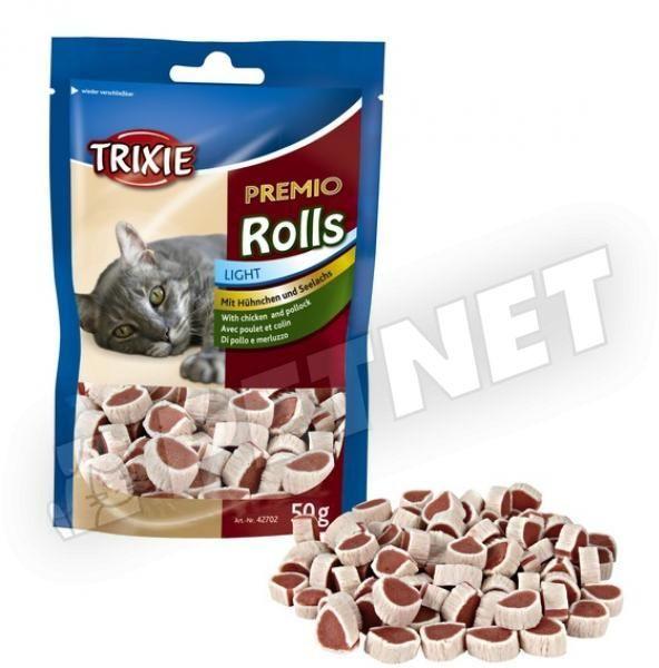 Trixie Premio Rolls - Ízletes, puha falatkák macskáknak, visszazárható tasakban, minimum 80% hústartalommal. Ideális túlsúlyos, speciális diétán tartott macskák jutalmazására is, két etetés között. Nem tartalmaz hozzáadott cukrot!