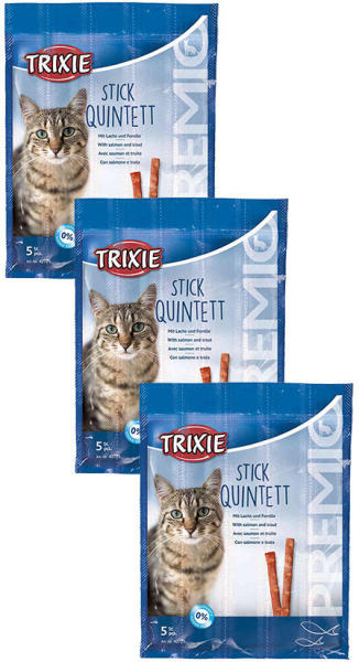 Trixie Premio Quadro-Strick lazac-pisztráng további jellemzői: lazaccal és pisztránggal készült, fehérjében gazdag jutalomfalat. 95% hústartalom nem tartalmaz hozzáadott cukrot visszazárható csomagolásban