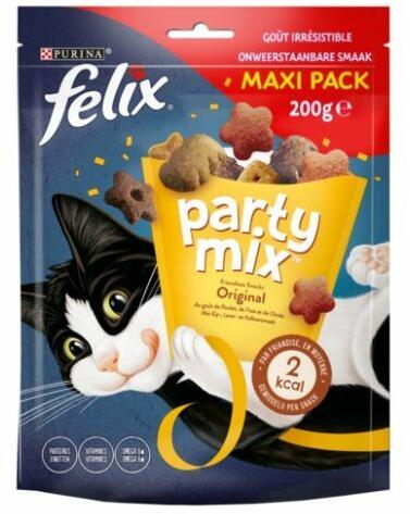 Felix Party Mix Original Mix macska jutalomfalat 200 g db/krt: 5 Termék információk A Csirke, Máj és Pulyka ízesítésű Felix Party Mix Original egy ellenállhatatlan, színpompás jutalomfalat, melynek illata és állaga csábító, az íze pedig magával ragad! Átlagosan 2 kcal/jutalomfalat Új receptúra, ugyanaz a nagyszerű ízvilág. Osztozz még több örömteli, csintalan pillanatb