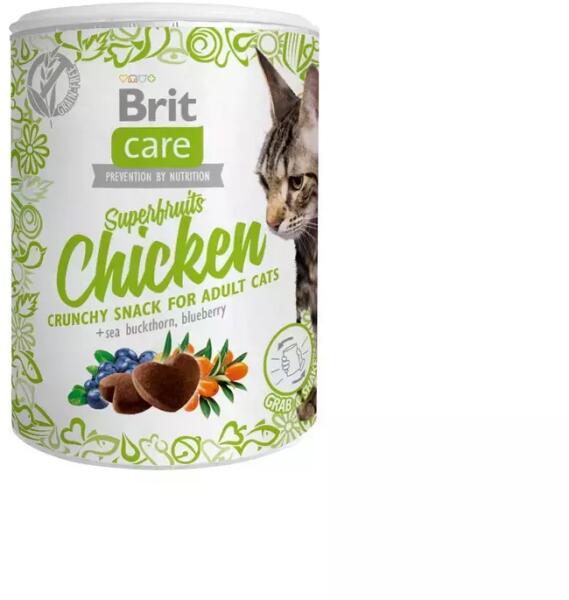 Kiegészítő állateledel felnőtt macskák számára. Ropogós csirkefalatkák SZUPERGYÜMÖLCSÖKKEL – homoktövis és fekete áfonya Csörgethető csomagolású, ropogós falatkák, amelyeknek a macskák nem tudnak ellenállni. 100 g Összetétel: dehidratált csirkehúsliszt (40%), sárgaborsó, csirkezsír – tokoferolokkal tartósítva (8%), édesburgonya, hidrolizált baromfifehérje (7