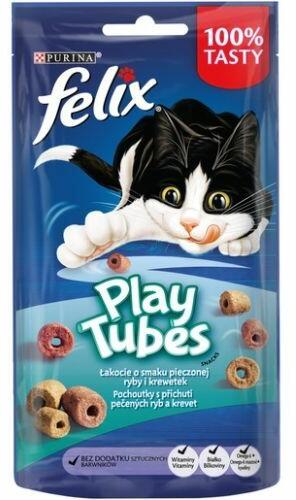 Felix Play Tubes Sült hal és Garnélarák ízesítéssel, macska jutalomfalat 50g 8 db/krt A FELIX Play Tubes megízesíti a napi közös játékot. Egyedi, hengeres alakja, kettős ízesítése, változatos méretei és a macskája által ismert és szeretett FELIX jutalomfalatok íze ellenállhatatlanul játékossá teszi. Csak dobjon egy jutalomfalatot a padlóra, és figyelje meg, ahogy macs