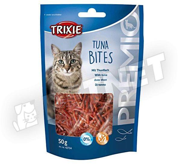 Trixie Premio Tuna Bites nyerslazachús csíkok – Illatos, és kifejezetten ízletes jutalomfalatkák macskáknak, visszazárható tasakban, magas nyershústartalommal.