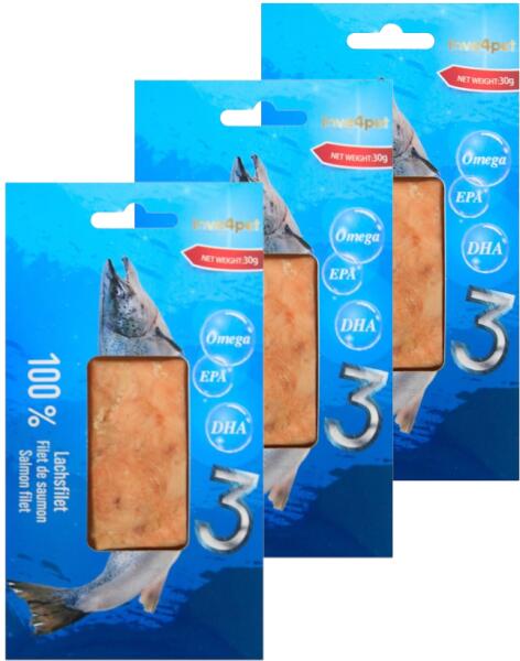 Love4Pet lazacfilé 30g lazacfilé - mutassa ki macskájának szeretetét és kényeztesse egy darabos lazacfilével. Természetes termék 100% lazacfiléből készült. Természetes ízű, ínycsiklandó rágcsálnivaló macskáknak. Hozzáadott cukor, mesterséges színezékek és tartósítószerek nélkül. Macskák számára 3 hónapos kortól. Összetevők: 100% lazacfilé Analitikai összet