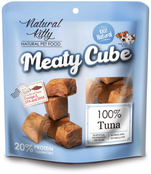 Natural Kitty 100% tonhal Összetevők: Tonhal. Garantált beltartalom: Nyersfehérje (Min) 20%, nyerszsír (Min) 0,1%, nyersrost (Max) 0,5%, nyershamu (Max) 2%, nedvesség (Max) 75%, kalcium (Min) 0,01%, foszfor (Min) 0,1%, ME 104 Kcal/100g. Etetési javaslat: Bármikor etethető jutalomfalatként vagy kiegészítő jutalomfalatként a kiegyensúlyozott étrend részeként. Tárolás: Hűvös és
