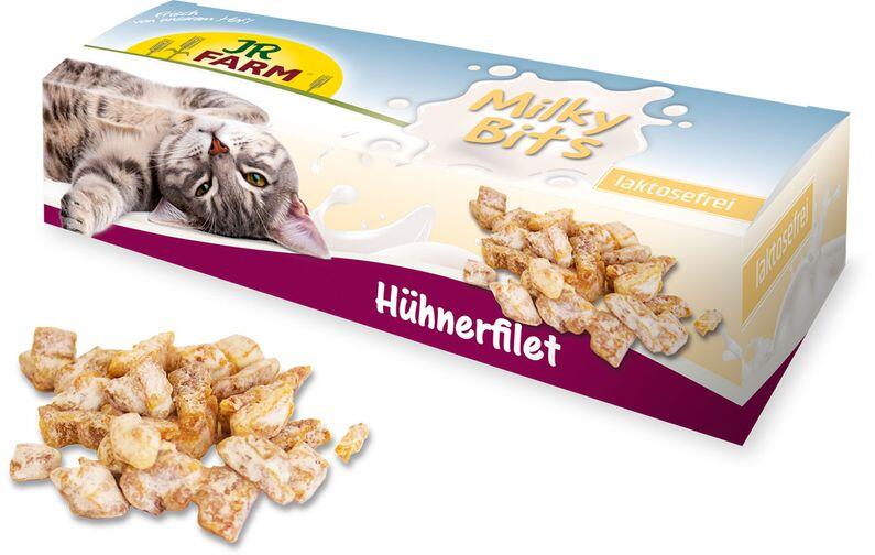 JR Cat Milky Bits csirke filé Egyedi és ellenállhatatlan tejes snack két étkezés között! Finom kis csirkefilé falatkák, laktózmentes, kalciumban gazdag tejjel bevonva. Tartósítószer, színezék, csalogatóanyag, vagy aroma nélkül, és természetesen cukor nélkül! A Milky Bits csirkefiléink tehát egészséges és könnyű falatok a kis ínyencek számára, és az aromás élveze