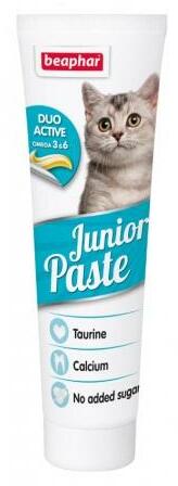 Az ízletes Beaphar Junior Paste multivitamon-paszta a kiscica fejlődő szervezete számára nélkülözhetetlen vitaminokat tartalmaz, valamint tejből származó kalciumot az egészséges csontok, fogak, izmok felépítéséért. A Beaphar Junior Paste két funkciót ötvöz egy tubusban. A sárga multivitaminos komponens tartalmazza mindazon vitaminokat, melyek szükségesek egy fejlődő kism
