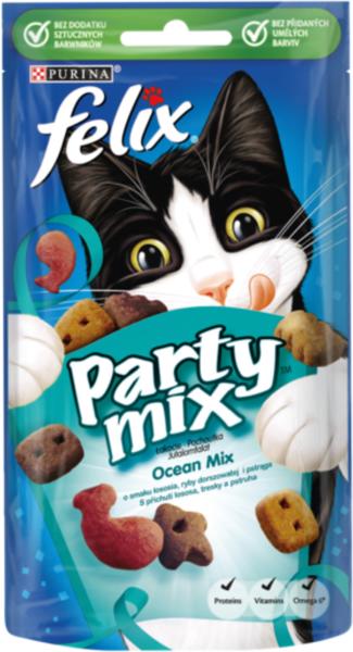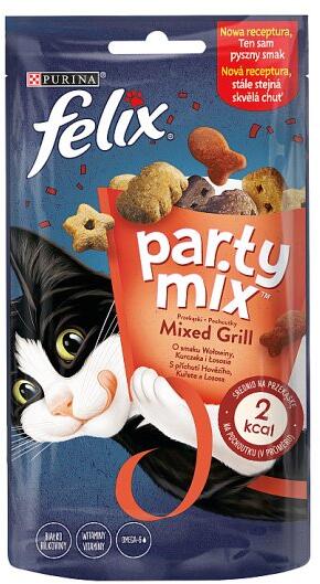 FELIX PARTY MIX Cheezy Mix macska jutalomfalatÖsszetétel Hús és állati származékok 35 Gabonafélék Olajok és zsírok Növényi fehérjekivonatok Tej és tejszármazékok 05 Edámi por 05 Gouda por 04 Cheddar por Ásványi anyagok Különféle cukrok Élesztő Hal és halszármazékok50 rehidratált hús és állati származéknak felel meg1 rehidratált Edáminak 1 rehidratált Goudanak 1