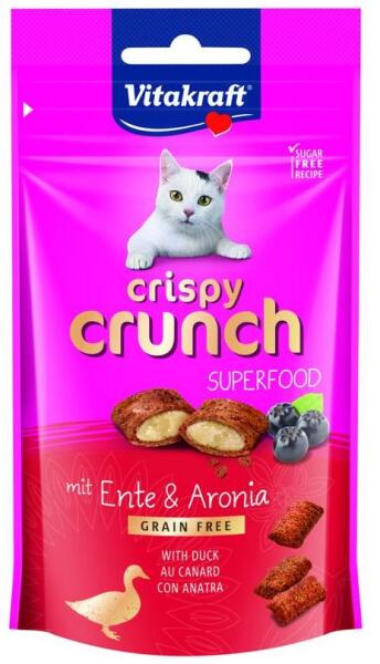Ropogós jutalomfalat kacsahúsos feketeberkenyés krémes töltelékkel. A fekete berkenye gazdag antioxidánsokban és védi a sejteket. Kiegészítő eledel macskák részére. Összetétel: zöldségfélék, hús és állati eredetű származékok ( kacsahús 4%), zsírok olajok, növényi eredetű származékok ( fekete berkenye 1.3% ), növényi fehérje kivonatok. Színezéket és antioxid