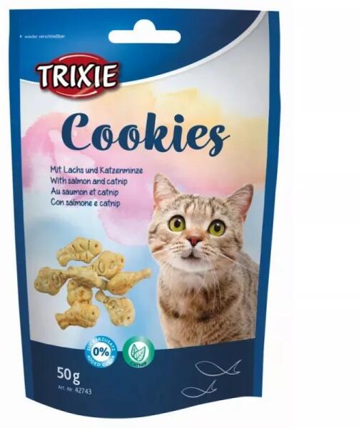 Cookies (50g) Keksz lazaccal és macskamentával macskák számára. Visszazárható tasakban a hosszan tartó frissességért. lazaccal és macskamentával visszazárható tasakbanTartalom / Súly: 50 g