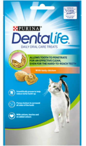 DENTALIFE Cat csirke 40gmacska jutalomfalatAz optimális hatás érdekében a 25 kg tömegű felnőtt macskát etesse naponta 17 szem jutalomfalattal Mindig legyen friss tiszta víz az eledel mellett Macskája egészsége érdekében tartsa be az etetési útmutatót és a főétkezést igazítsa az etetett mennyiséghez Felügyelje macskáját a jutalomfalattal való etetés soránHús és állat