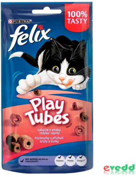 Termékleírás Termék információk A Felix® Play Tubes megízesíti a napi közös játékot. Egyedi, hengeres alakja, kettős ízesítése, változatos méretei és a macskája által ismert és szeretett Felix® jutalomfalatok íze ellenállhatatlanul játékossá teszi. Csak dobjon egy jutalomfalatot a padlóra, és figyelje meg, ahogy macskája egyből utánairamodik! Márka információk