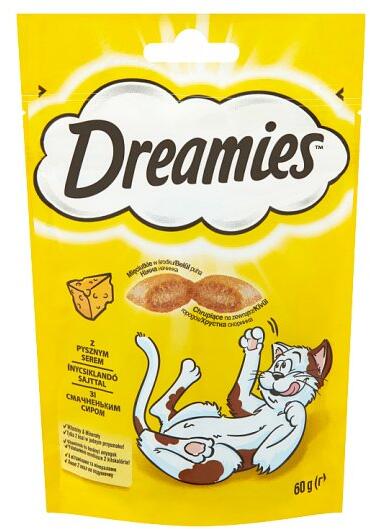 DREAMIES lazacos macska rágcsálnivaló 60g - Termékleírás Ez a kiegészítő eledel 8 hetesnél idősebb macskáknak készült, finom, ropogós, puha lazactöltelékkel töltött pástétom formájában. Mikro- és makro-ásványi anyagokkal dúsított összetétele segít macskája jó kondíciójának megőrzésében. Összetétel Hús és állati eredetű termékek Gabonafélék Olajok és