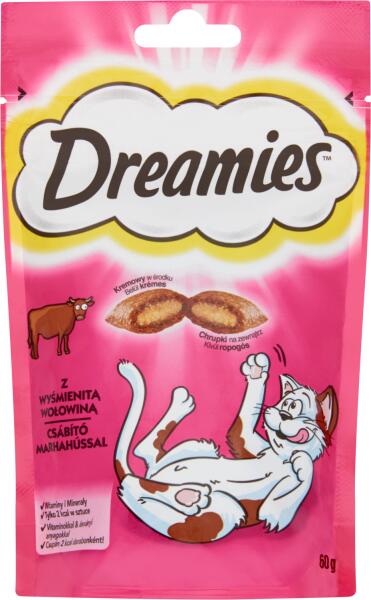 A macskák álmodnak a finom Driemies macskacsemegéről. Összetevők: Növényi fehérje kivonatok, gabona, hús és állati termékek, ebből 4% marhahús, olajok és zsírok, ásványi anyagok.