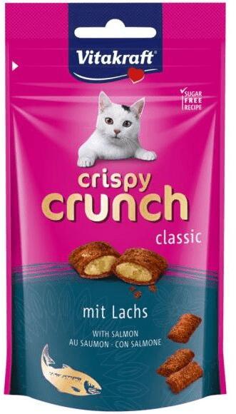 Vitakraft Crispy Crunch lazaccal 60g - Termékleírás Ezek az ízletes, ropogós kekszek a macska kényeztetésére szolgálnak. Minden egyes darab finom, krémes töltelékkel rendelkezik, amelyet minden macska imádni fog. A baromfitöltelék még ízletesebbé teszi a rágcsálnivalót. Cukormentes csemege felnőtt macskáknak, ropogós párnák lazactöltelékkel. Összetétel Gabonafélék H