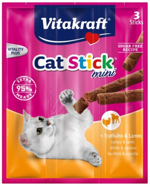 Az eredeti Cat stick! Ízletes húsrúd macskák részére extra magas hústartalommal. Összetétel: hús és állati eredetű származékok 95% ( melyből 6% pulykahús, 6% bárányhús, 75% színhús), ásványi sók. Analitikai összetevők: nedvességtartalom 28% nyers fehérje 33,5%, zsírtartalom 20%, nyers rost 2%, hamu 10%. Antioxidánsokat és tartósítószert tartalmaz.