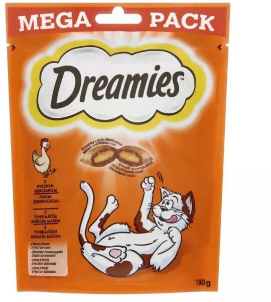 Mega Tub Chicken El szeretné kényeztetni macskáját valamivel amiről mindig is álmodott? Most itt van a Dreamies macskacsemege, kívülről ropogós és belül krémes, ízletes jutalomfalat. A ropogós héjban levő krémes töltelék pontosan a megfelelő minden cica számára. A praktikus, visszazárható csomagolás frissen tartja a macskacsemegét, hogy kedvencét minden nap újra meg ú