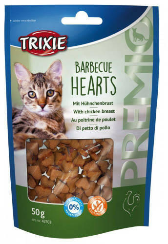 Trixie Premio Barbecue Szivek további jellemzői: csirkeme llből készült jutalomfalat fehérjében gazdag 62% hústartalom nem tartalmaz hozzáadott cukrot gluténmentes vis szazárható csomagolásban