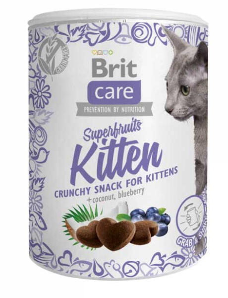 Kiegészítő állateledel kismacskák számára 6 hetes kortól. Ropogós csirkefalatkák SZUPERGYÜMÖLCSÖKKEL – kókusz és fekete áfonya Csörgethető csomagolású, ropogós falatkák, amelyeknek a kismacskák nem tudnak ellenállni. 50 g Összetétel: dehidratált csirkehúsliszt (40%), sárgaborsó, hidrolizált baromfifehérje (10%), csirkezsír – tokoferolokkal tartósítva (9%), é