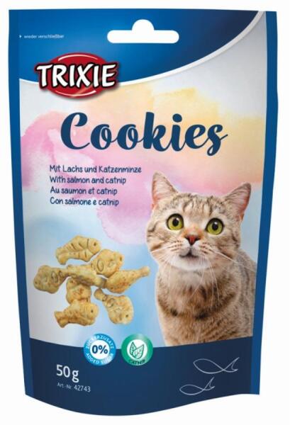 Jutalomfalat sütik macskák számára lazaccal és macskamentával. A Trixie ízletes sütik ideális jutalomfalatok a főétkezések között. Egy csipet macskamenta különösen csábítóvá teszi ezt az ízletes csemegét. A visszazárható csomagolás gondoskodik róla, hogy a rágcsálnivalók frissek maradjanak. Összetevők: búzaliszt, pálmaolaj, hal és hal eredetű melléktermékek (8