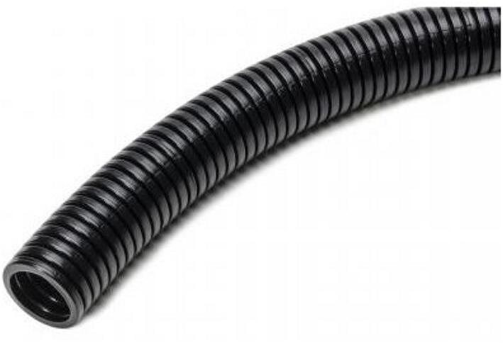 Behúzószálas ICTA (szigetelő, hajlítható, keresztirányban rugalmas, gyűrűs) típusú, MSZ EN 61386-22 szabványnak megfelelő, égésgátló, duplafalú és belsőjében síkos hatású cső, ami a telepítés során mechanikusan védi a vezetékeket vagy kábeleket. Gyártó: Courant, Franciaország Átmérő: 20mm 100m/tekercs Szín: fekete Anyaga: poliolefin Minimális használati hőm