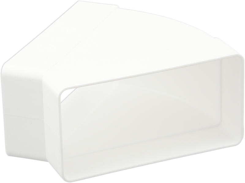 A műanyag vízszintes 45°-os könyök a 204x60 mm-es légcső vagy idomok csatlakoztatására szolgál. Hosszú élettartamú. Összeszerelése egyszerű, bonyolult szerszámok használata nélkül (a csatlakozások egyszerűen egymásba vannak tolva). A könyököt 50 °C-os hőmérsékletig tervezték, és szürke színű PS műanyagból készült. Ez az idom ütközőkkel van felszerelve, ame