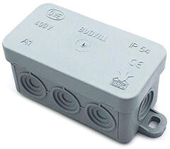 IP54 kötődoboz könnyen összeszerelhető kicsi csatlakozódoboz használható elektromos kötések kialakítása során, például kültéri lámpa, reflektor, térfigyelő kamera szerelésekor 8 darab kábelbemenet 2 darab rögzítőfül IP54 védettség éghetetlenség ≤ 650°C polipropilén doboz, polietilén fedő szilikonmentes, halogénmentes