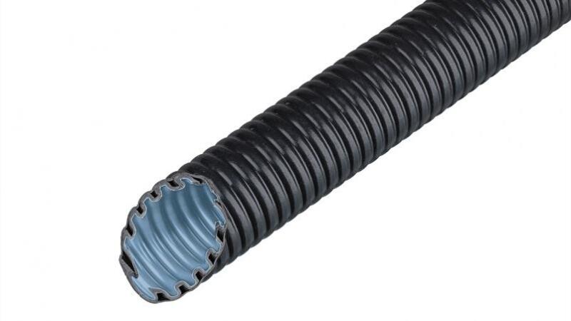 Corblack befűzőszalagos duplafalú gégecső Mélyépítésre alkalmas közműcsőAlapanyaga: nagy sűrűségű polietilén (HDPE). Felépítése: a külső köpeny bordás, mely a lépésállóságot és a rugalmasságot adja, belül pedig sima falú, mely megkönnyíti a kábelek, vezetékek behúzását. A tekercs acél behúzószállal, valamint egyik végén toldóval rendelkezik. Felhaszn