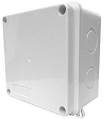 Sima falú kötődoboz csavaros fedéllel elágazódoboz vezetékek összekötéséhez, elektromos csatlakozások kialakításához falon kívüli kötődoboz fali/mennyezeti szereléshez segítségével IP65 védettség alakítható ki csavaros tetejű világosszürke színű