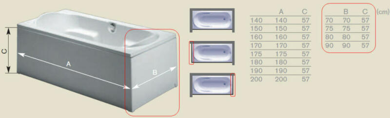 Kád előlap Eva Side 150 jobbos fürdőkádhoz|Méret: 170x58 cm