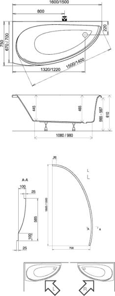 M-Acryl előlap Azalia 160-as, jobbos kádakhoz