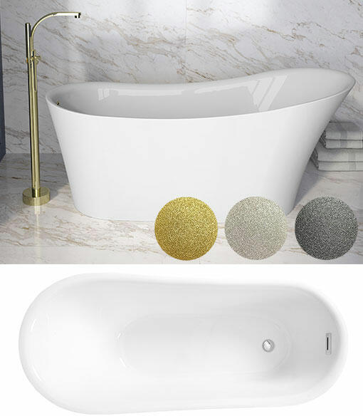 Gyártó: Mexen Sorozat: Tonia Típus: szabadon álló fürdőkád Hossz: 1700 mm Szélesség: 750 mm Magasság: 580 mm Anyaga: egészségügyi akril Fehér szín Felületkezelés: Rózsarany / fényes Túlfolyó lyuk: Igen Akkumulátor lyuk: nem A készlet tartalmaz egy szifont és egy ClickClack típusú leeresztő dugót Fokozott ellenállás a színekkel és az UV sugárzással szemben