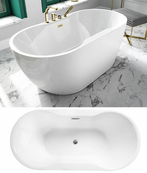 Rea Milano, szabadon álló akril kád 170x73 cm, fehér fényes, REA-W2001 Leírás: Gyártó: Rea Sorozat: Milano Szín: fehér fényes Anyaga: akrilát Típus: szabadon álló fürdőkád Hossz: 1700 mm Szélesség: 730 mm Magasság: 550 mm Űrtartalom: 302 l Súly: 54 kg A készlet tartalmaz egy túlfolyót szifonnal és egy króm ClickClack típusú leeresztőcsavart.