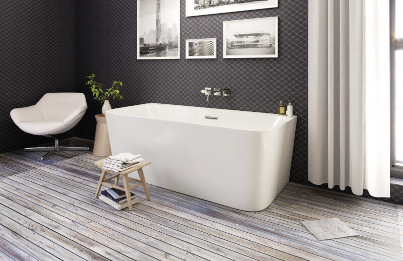 Falhoz állítható kád click-clack leeresztővel|Méret: 170x80 cm|Magasság: 60 cm|Űrtartalom: 292 l|Szín: fényes fehér|Anyag: akril|A kádszifon nem tartozék.