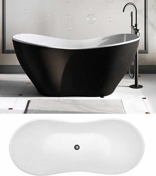 Gyártó: Mexen Sorozat: Luna Típus: szabadon álló fürdőkád Hossz: 1600 mm Szélesség: 750 mm Magasság: 580 mm Anyaga: egészségügyi akril Szín: fehér-fekete Felületkezelés: Grafit matt / sima felület Túlfolyó lyuk: Igen Akkumulátor lyuk: nem A készlet tartalmaz egy szifont és egy ClickClack típusú leeresztő dugót Fokozott ellenállás a színekkel és az UV sugárzással s