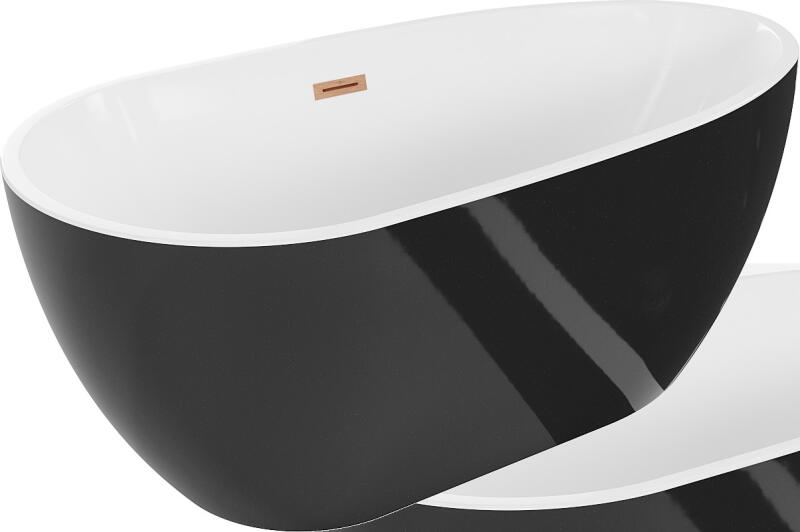Gyártó: Mexen Sorozat: Ovális Típus: szabadon álló fürdőkád Hossz: 1600 mm Szélesség: 800 mm Magasság: 580 mm Anyaga: egészségügyi akril Szín: fehér-fekete Felület: csiszolt réz / matt Túlfolyó lyuk: Igen Akkumulátor lyuk: nem A készlet tartalmaz egy szifont és egy ClickClack típusú leeresztő dugót Fokozott ellenállás a színekkel és az UV sugárzással szemben