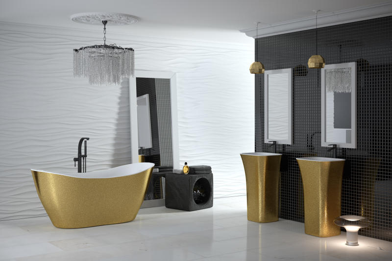Besco Viya Glam 160x70 cm-es szabadonálló kád, fehér/ezüst WMD-160-VS Belül fehér, kívül glam (csillogó) ezüst szín Anyaga: Mineral DuraBe Űrtartalom: 170 liter