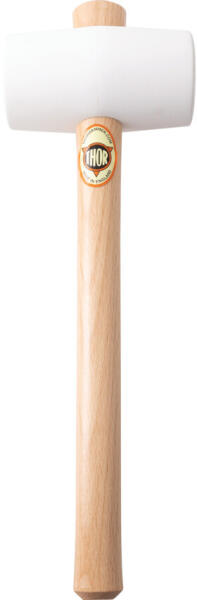 Kovácsoltvas fej fehér, kemény polieténből készült műanyag betéttel nagy erejű ütésekhez.