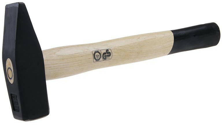 Univerzális használatra alkalmas, fából készült nyéllel ellátott kalapács. A kalapácsfej kovácsolt acélból készült. DIN 1042.
