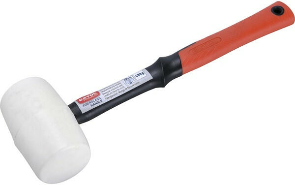 gumikalapács üvegszálas nyéllel, fehér gumi ; 70 mm, 0,68 kg Egy darabban öntött kompozit mátrix műanyag váz, erre öntik rá speciális befecskendezős technológiával a gumi fejet. Hosszú élettartamra tervezve.