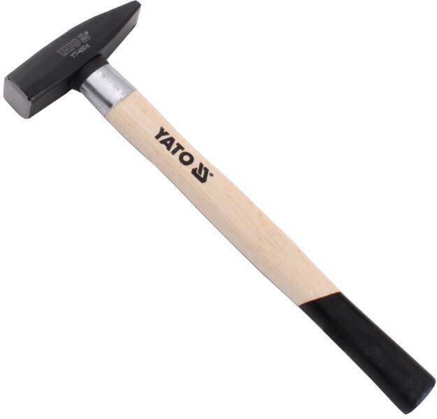 Univerzális használatra alkalmas lakatos kalapács fa nyéllel. A kalapácsfej kovácsolt acélból készül. DIN 1041.
