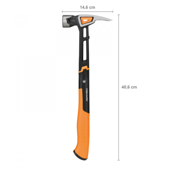 Megerősített üvegszálas markolat Gumibevonatú markolat a kényelmes fogásért és a rezgéscsillapításért Szegek könnyű eltávolítását teszi lehetővé Mágneses szegtartó a biztonságos használatért Pontos egyensúly a jobb kezelés érdekében