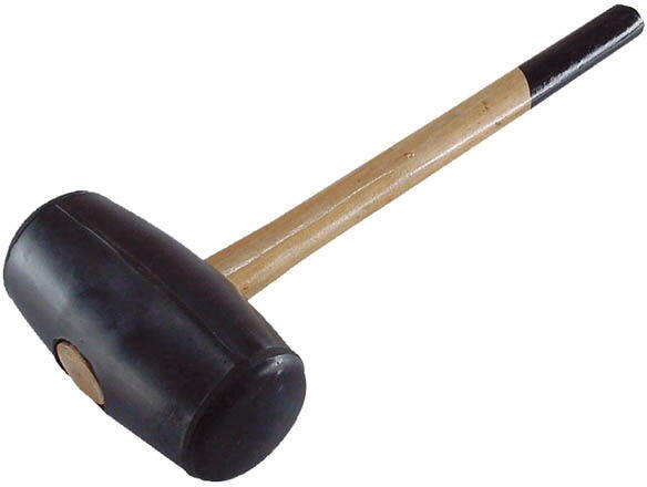 Fából készült nyelű lemezkalapács lemez- és szerelési munkákhoz. A kalapács fémből készült felületének két vége gumiból és műanyagból készült. Bádogos kalapács 150 g/22 mm