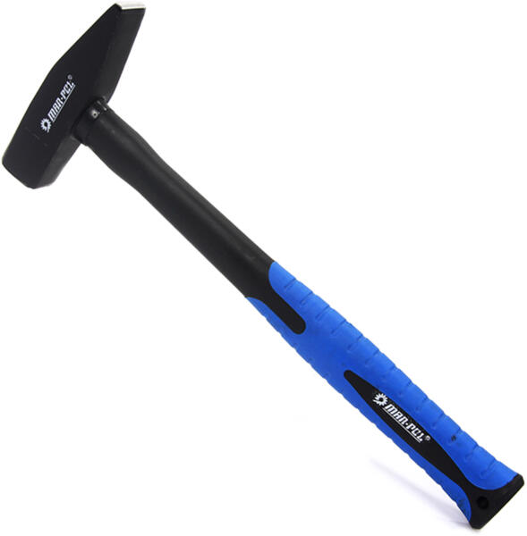 Kalapács fiberglass 400g 400 g-os Fiberglass kalapács üvegszálas, termoplasztikus gumival van bevont nyéllel. A nyél a mély bemélyedésekkel biztosítja a erős fogást még nedves kézzel is. A kalapács feje magas széntartalmú acéllal. Technikai paraméterek:Súly: 400 gTeljes hossz: 300 mm