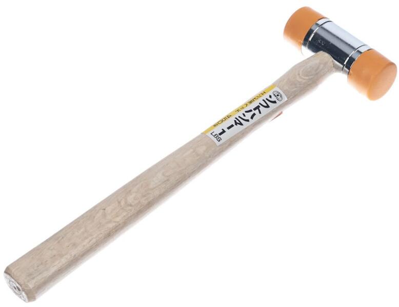 Fekete gumi fejjel ellátott kalapács, amelynek keménysége 80 egység (Shore A. szerint). A hagyományos kivitelnél a szerszám különbözik a fej rögzítésében, az átmenő nyél nincs rejtva, hanem túllóg. A fából készült kétszínű fogantyút színtelen lakk védi a kiszáradástól.