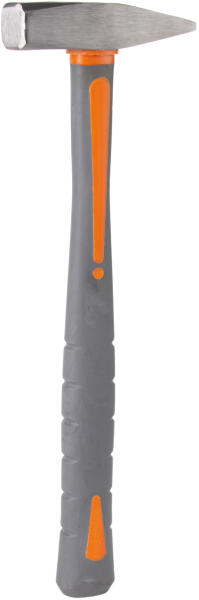 Üvegszál alapú sérülésálló műanyagból készült nyélre szerelt acélkalapács. A markolat csúszásmentes, profilozott. Tömeg (fej): 1000 gr Fej anyaga: acél Nyél anyaga: üvegszál, PVC